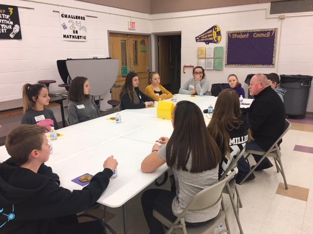 Champion Board of Education members recently conducted a dialogue forum with 8th graders to seek their opinions on school district programs, discipline procedures, rigor of their classwork and a variety of other topics. Dialogue feedback from these students has previously led to changes in class schedules, new programs, and improvements to safety.