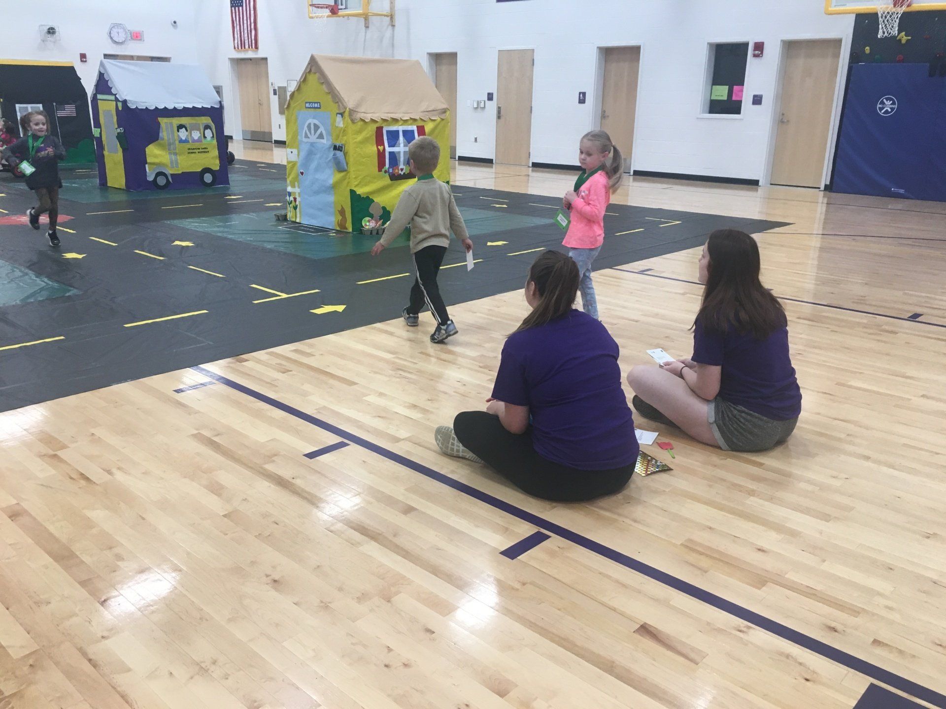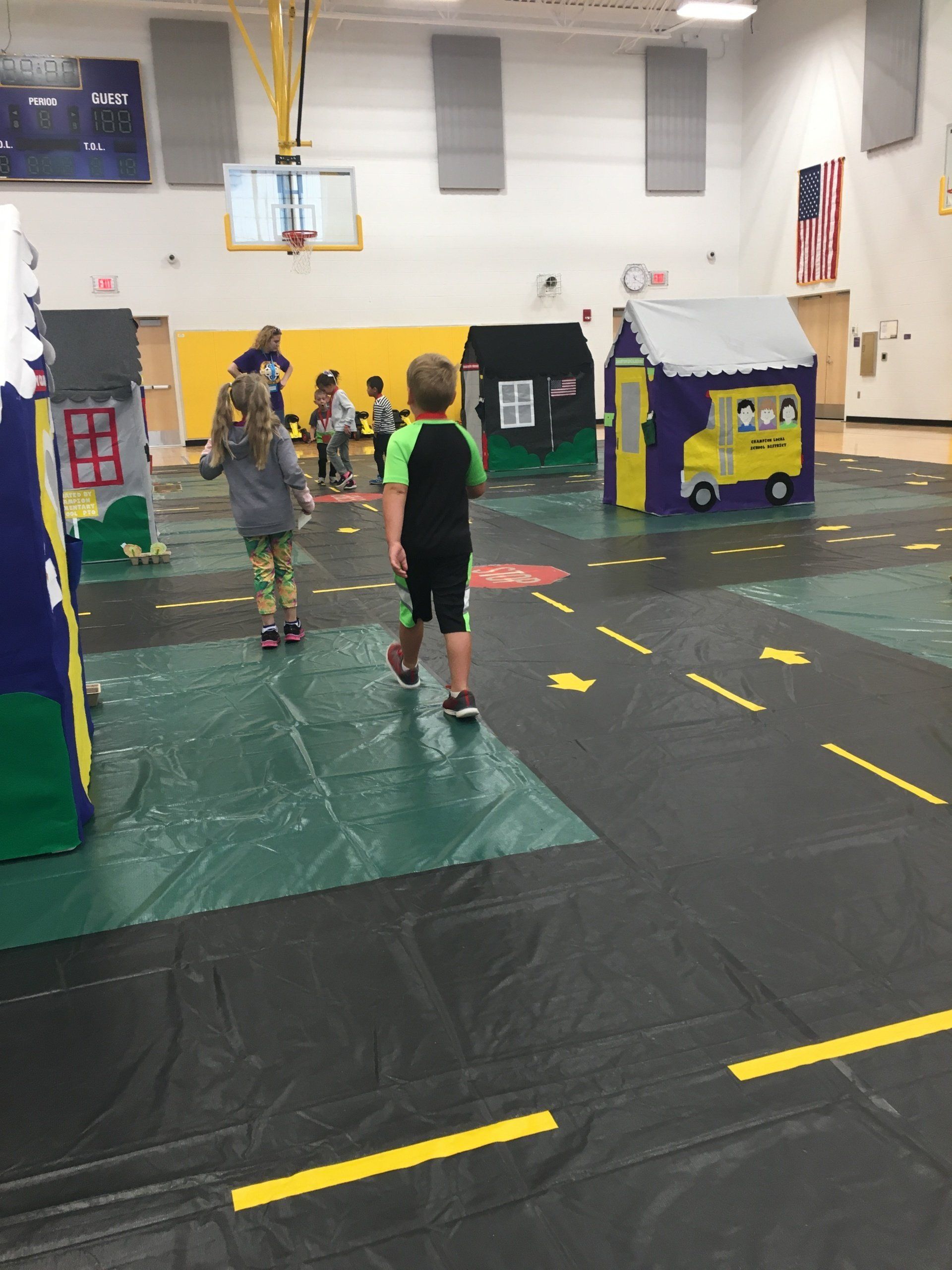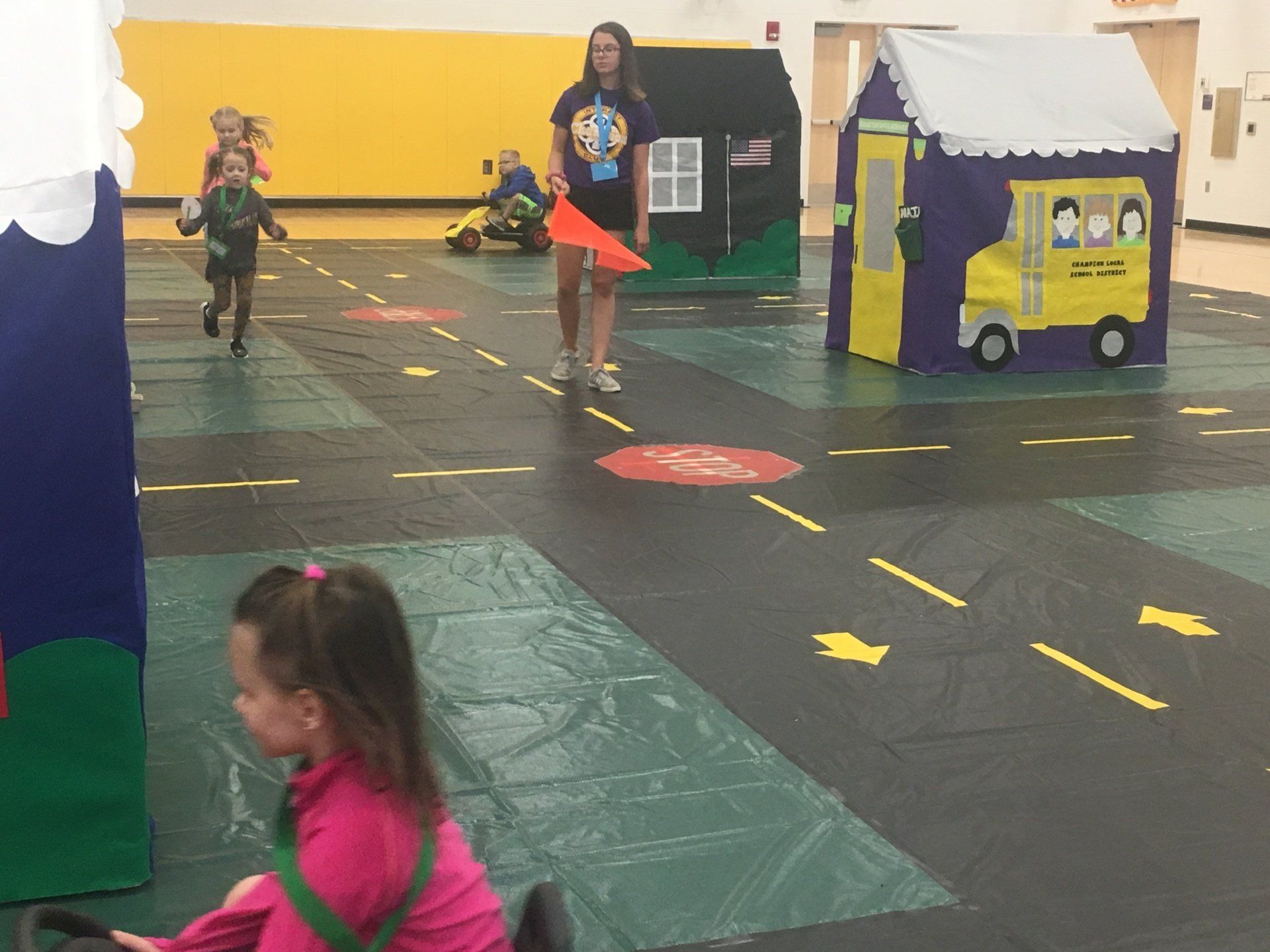 when it comes to the bus. Safety Towners went over playground rules and enjoyed guided play. Safety Towners also practiced walking in straight, safe lines and practiced their listening, sharing and kindness skills in Safety Town.