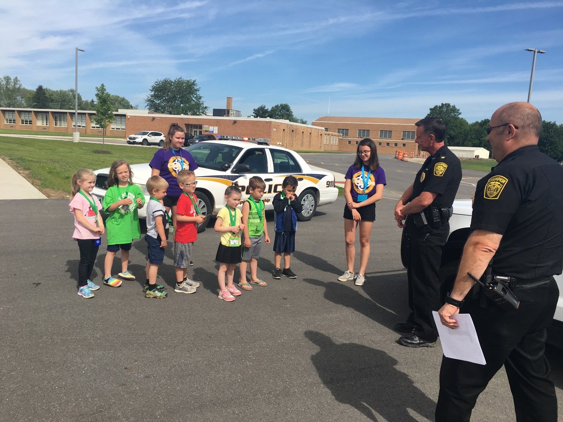 The Champion Police Department visited Safety Town. Safety Towners learned about being safe in the car, in the neighborhood and at school. Safety Towners learned about 9-1-1, when to call for help and how to do it. Safety Towners practiced traffic and pedestrian rules in Safety Town. They delivered mail, picked up recycling and planted flowers.