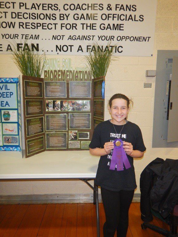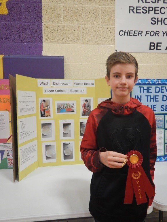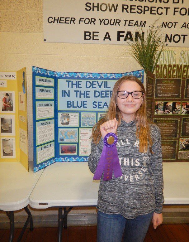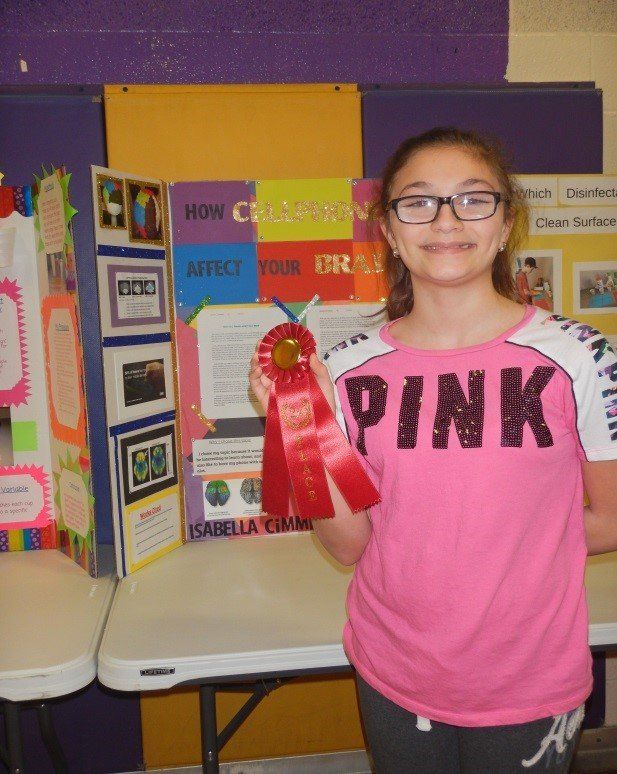For the last several months Champion Middle School sixth grade students have been working hard on their Science Fair projects. Mr. Cornelius has emphasized how scientists answer questions and solve problems. This year's Science Fair highlighted the results of a lot of hard work by students. The students who earned Best of Show ribbons included Olivia Gray for "Saving Soil through BioRemediation" and Channing Fox for "The Devil in the Deep Blue Sea". Top Second place ribbons were awarded to Brendan Allen for "Which Disinfectant Works Best to Clean Surface Bacteria" and Isabella Cimento for "How Cellphones Affect Your Brain." Top Third place ribbons were awarded to Savanna Wright for "Hot or Not?" and to Mitchell Diehl for "Which is the True Picker Upper?". Thanks for all the parent support allowing students to develop such outstanding projects.